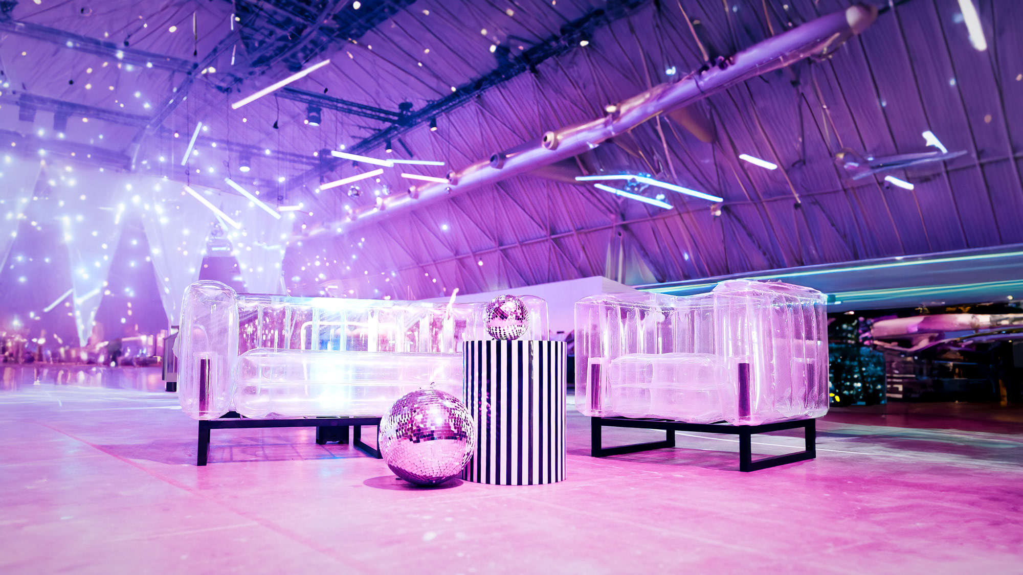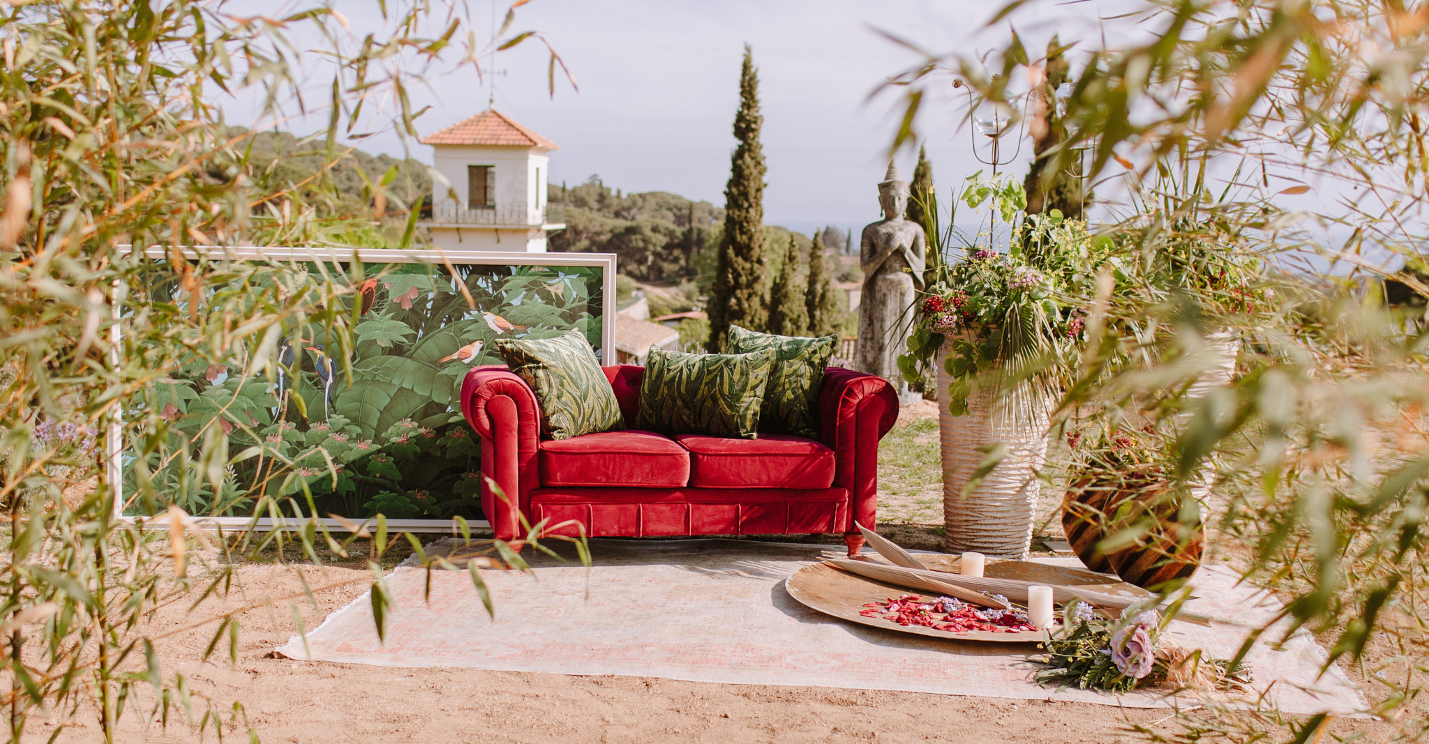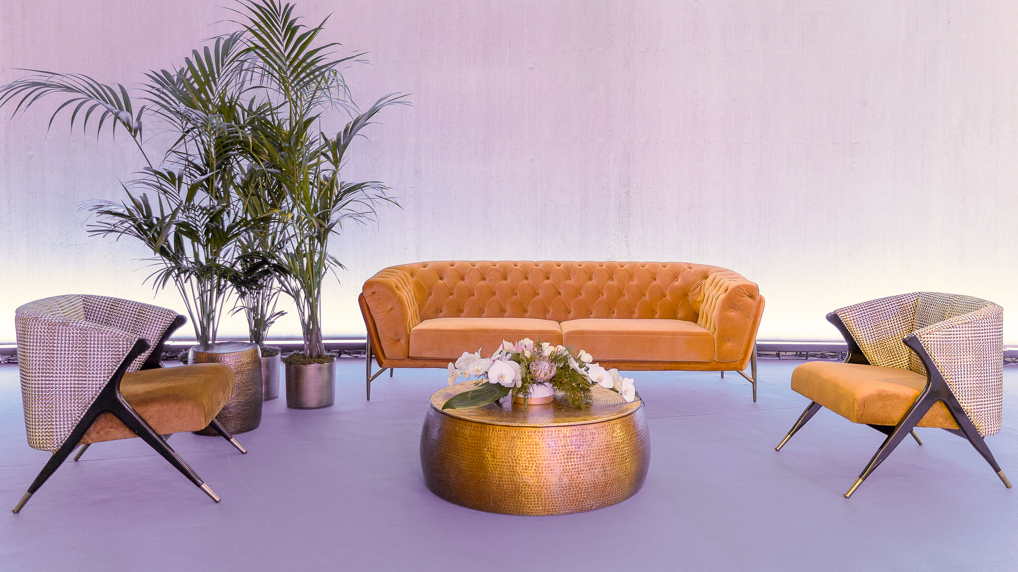 La mayoría de eventos se realizan en espacios abiertos. El chillout al aire libre nos proporciona el poder disfrutar del entorno y relajarnos en el idílico ambiente del evento, asegurándonos el éxito del espacio.